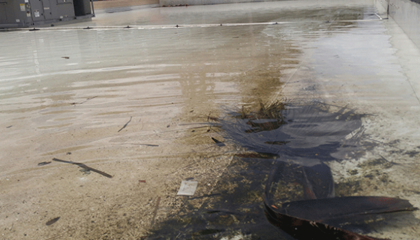 If your roof drain plug is clogged and your roof is holding standing water this is a big problem. This causes for the roofing materials to degrade, and start to allow water to leak in to your building.